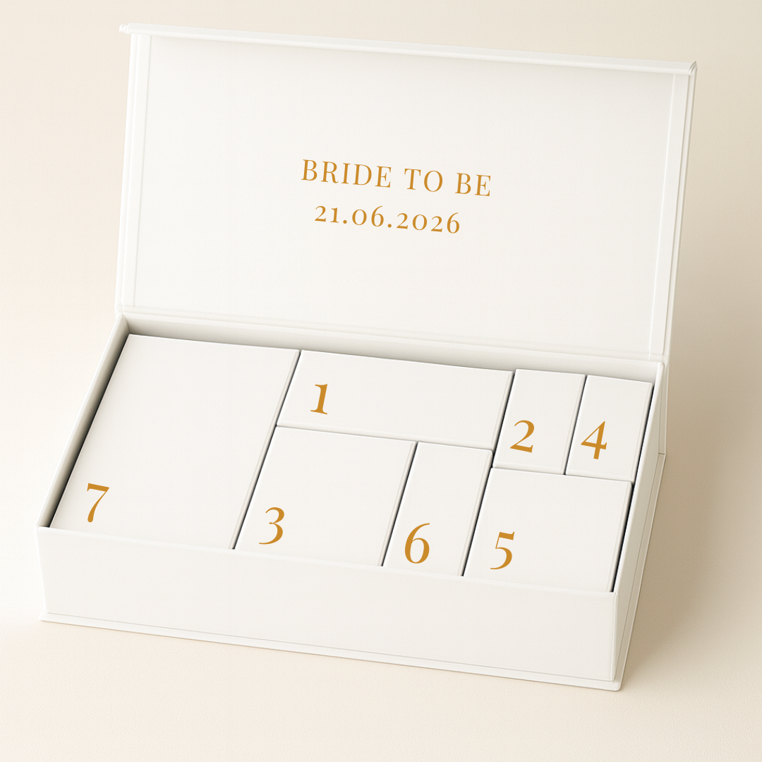 Sichere dir die limitierte Bridal Countdown Box – handgefertigt, personalisiert und exklusiv. Pre-Launch ab dem 01.12.2025.
