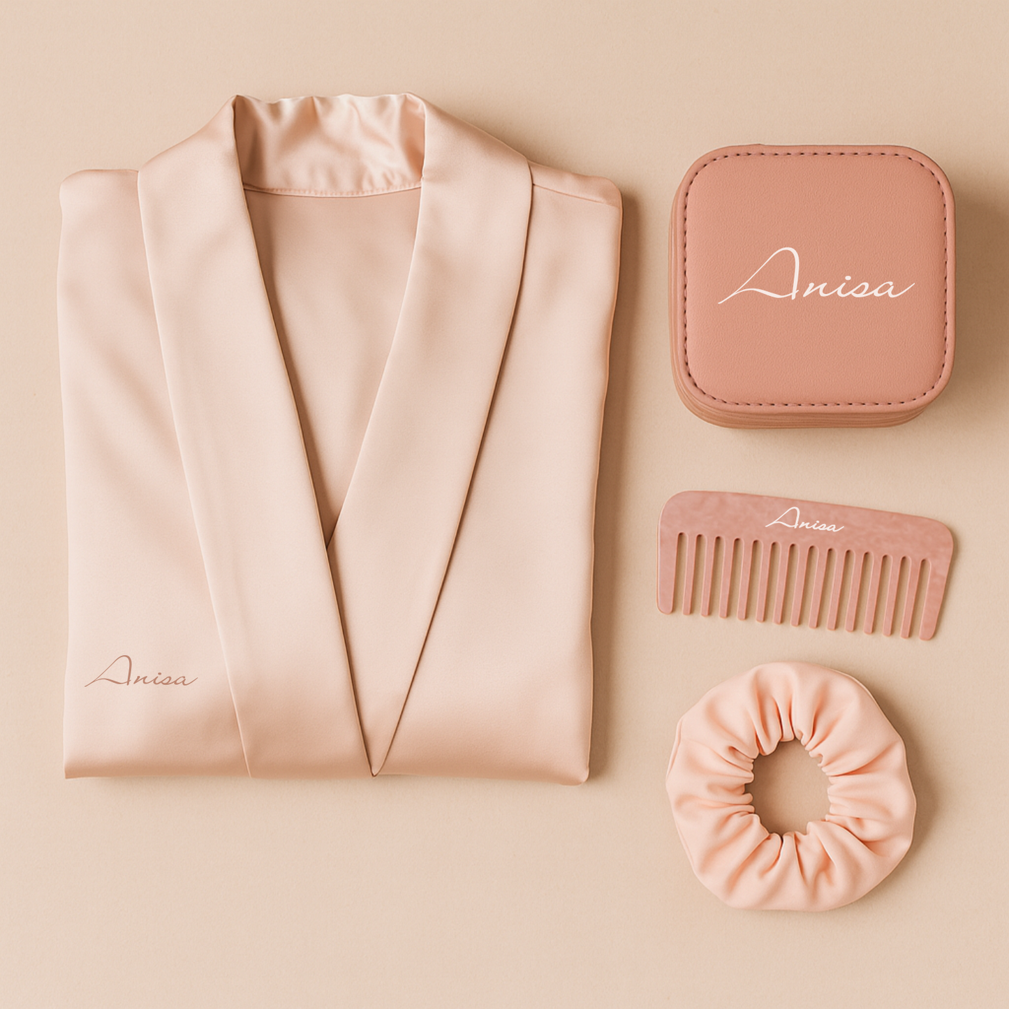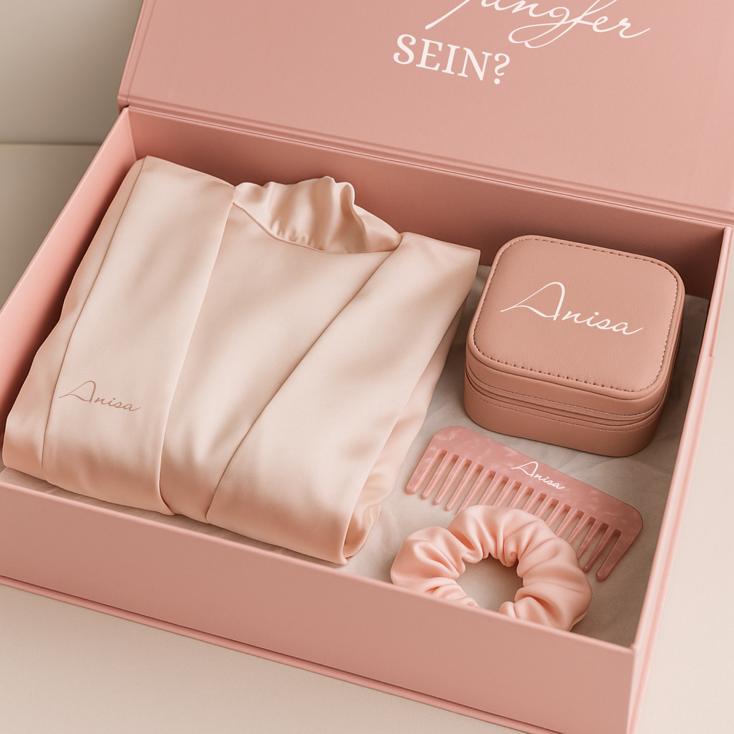 Blush Brautjungfer Geschenkbox – Personalisierter Seidenmantel & Accessoires